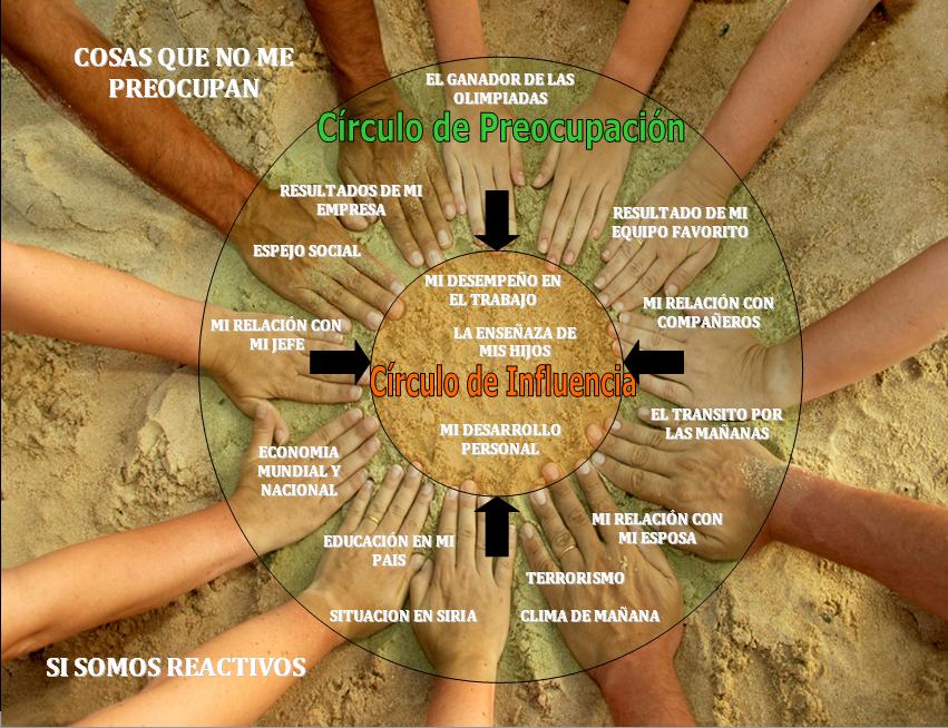 El círculo de preocupación abarca todas las cosas que nos preocupan, sobre las que tenemos control directo (círculo de influencia) y sobre las que no tenemos ningún control.